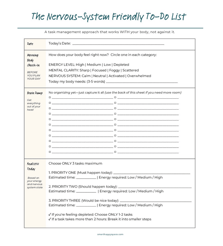 Enter your email to download The Nervous System-Friendly To-Do List—manage tasks without overwhelming your brain